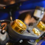 The R model which we've pictured here comes with even more bells and whistles. The front forks get an upgrade to Showa Balance Frees (shown below left), there's an autoblipper, launch control and quickshifter for starters.